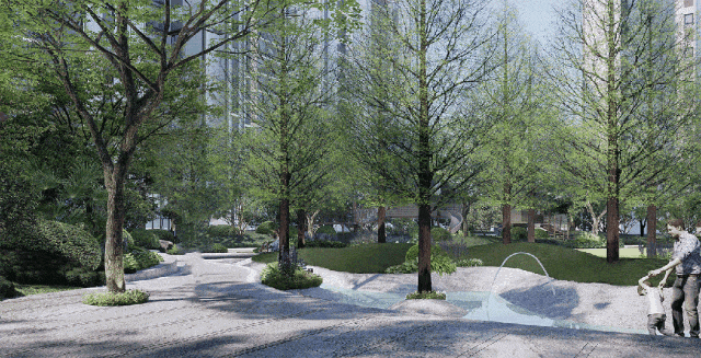 园林以 “森系秘境” 为核心,打造石之森、水之森、木之森、雾之森四重沉浸式景观,将自然与生活深度融合。相比一期,新增垂直绿化、入户庭院、全龄互动场景,让园林不再是单一的观赏空间,而是集亲子戏水、自然探索、社交会客、休闲健身于一体的生活剧场。