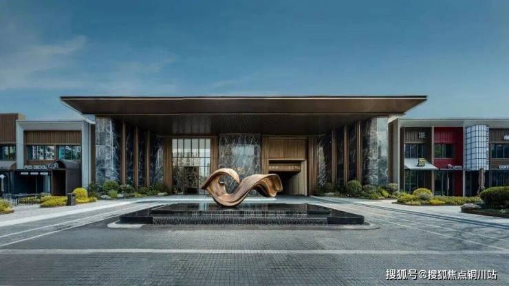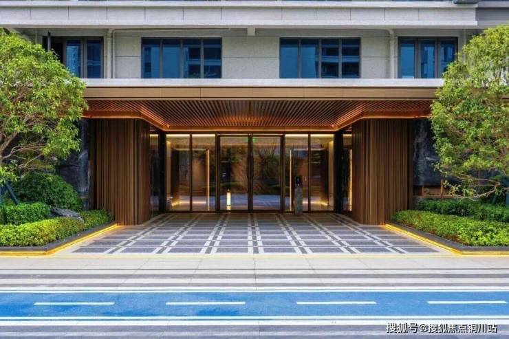 社区入口高达7米,开敞面近40米,配以对称树阵、景墙、艺术雕塑及喷涌水景,营造出高奢酒店式的落客区。