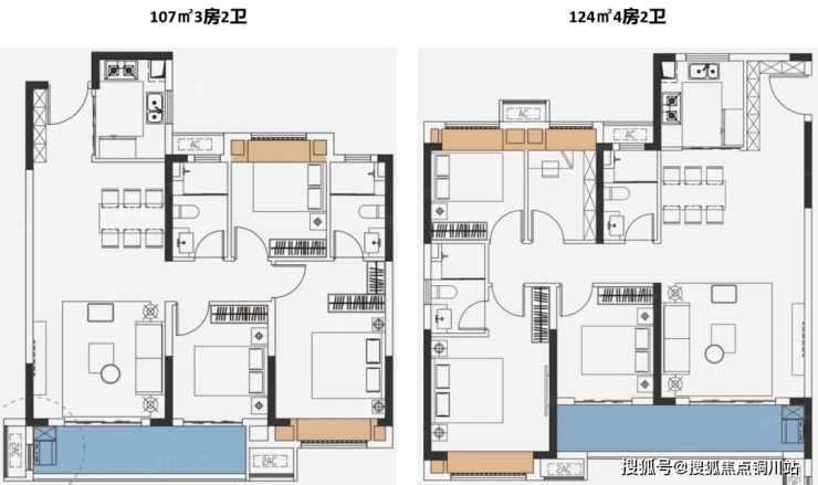 一期打造建面约107㎡三房及124㎡四房两个户型,户型定位精准匹配刚需首置与刚改家庭的居住需求,既有满足三口之家的舒适三房,也有兼顾二胎或三代同堂的功能四房。