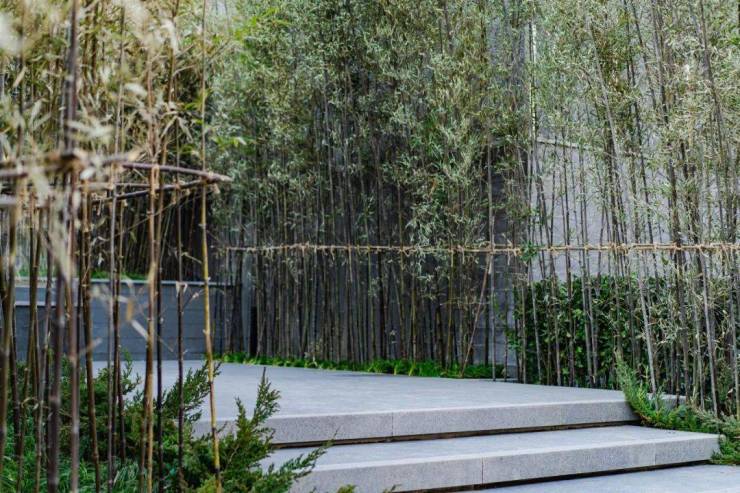 竹影庭,种植了一大片的紫竹,视觉清透,寓意平安,即便在冬天也能收获满眼绿茵↓