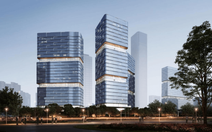 采用国际竞赛方式落地规划方案,邀请国际知名设计机构参与概念方案比选。立面设计元素源自宋代马远的十二水图,将水图中长江万顷的绘画笔触,提炼为建筑造型语汇,将当代国际化的建筑风格与武汉本土的长江水文化结合,构成具有识别度的城市建筑形象。