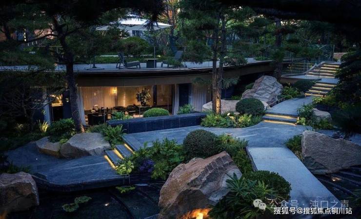 园内造价600万的森系下沉庭院超吸睛,17阶水景与项目门牌呼应。丛生乌桕、造型红梅搭配置石,叠水瀑布自芝兰玉树飞泻,气势不凡。沿香径漫步,红梅、迷迭香萦绕,过景行桥,至会客观景台,流水潺潺,尽享林泉之趣。
