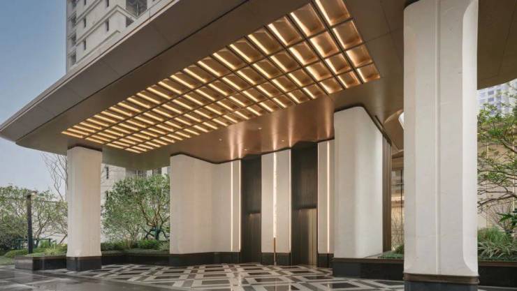 五展:以曼谷四季酒店为设计蓝本,定制高定大门—玉屏沉光—空中艺廊—翠园雅境四重礼序归家,雕刻现代人居美学质感。