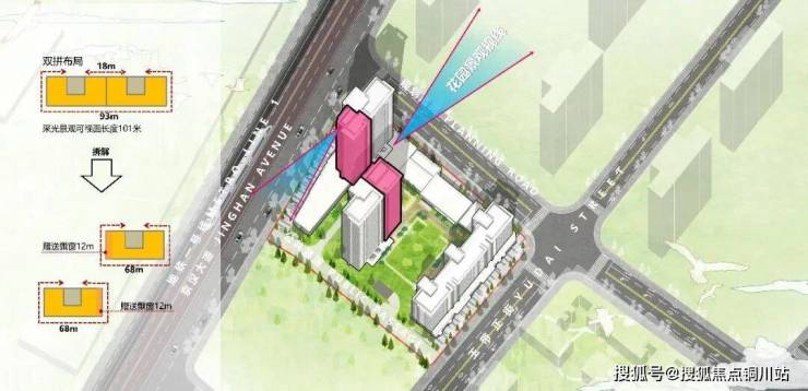 摒弃传统的兵营式排布,高层采用全T2单点错位布局。建筑错位排布带来的不仅是极致的通风采光效果,更让开阔的视野得以最大化,将城市繁华与园区盛景尽收眼底,实现了“光皆能入室,景皆可成画” 的居住理想。