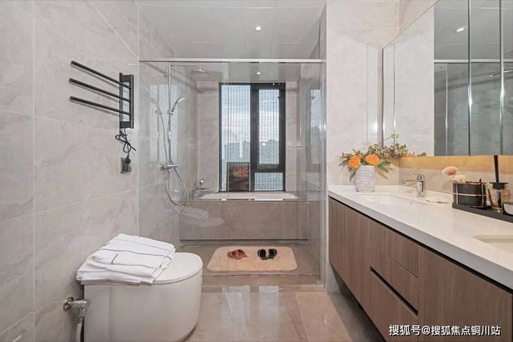 并且,配备了日立中央空调以及菲斯曼地暖,武汉的冬季湿气非常重,有了地暖能极大提升冬季生活的幸福指数。不仅如此,卫生间还安装了冷暖两用暖风机,保证业主最舒适的体验感。