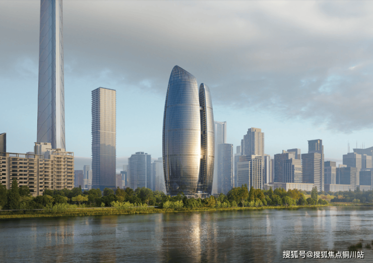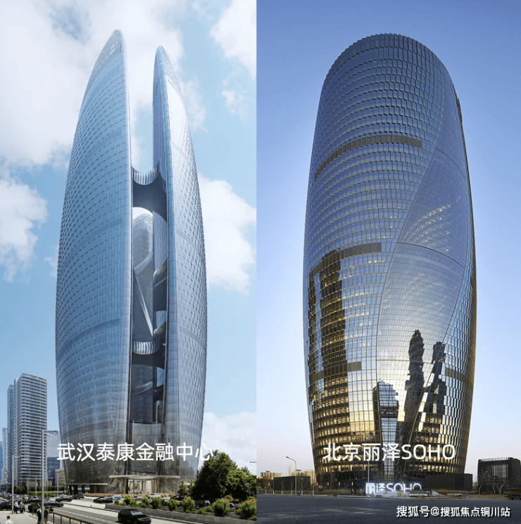 三座高度分别为270米、238米和261米的塔楼呈环抱状布局。总体来看,整栋建筑像是一朵鲜花裂开了三瓣,有含苞待放之意,又像是一座圆桶型楼体被剖去了内核,一分为三。