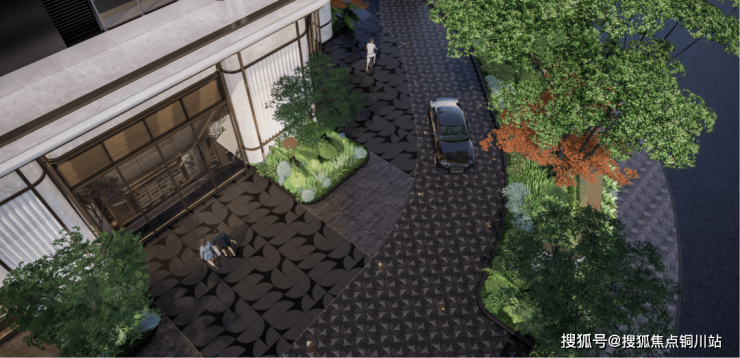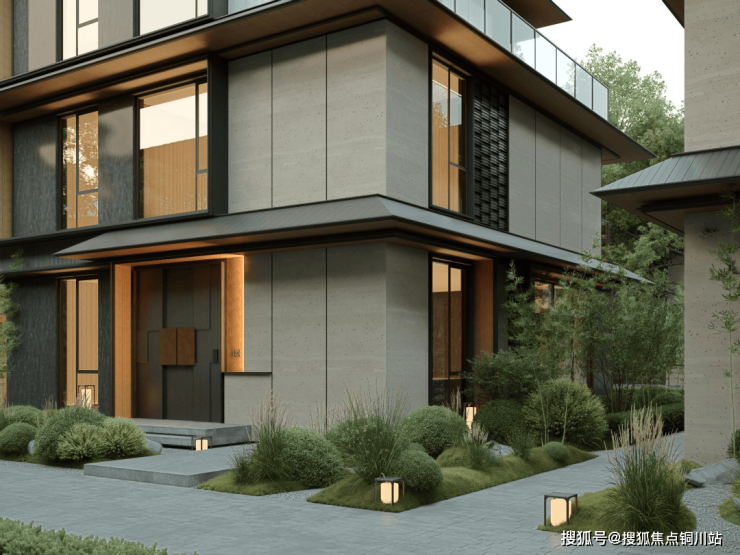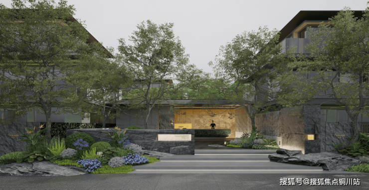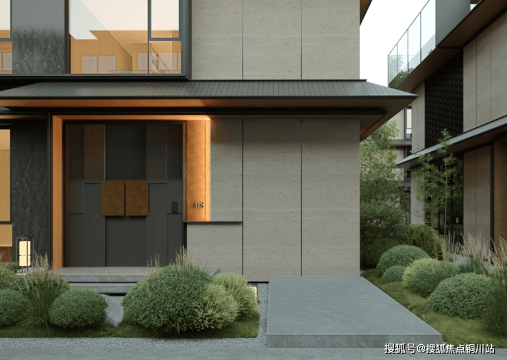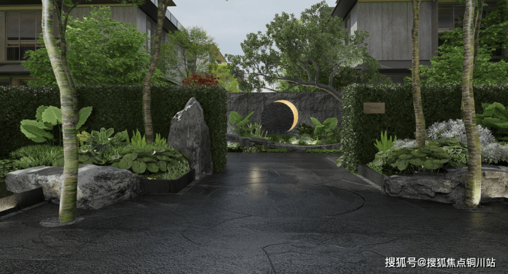 采用了京都安缦同款的门头,连接着月相巷道。回家路上是大片的绿色植物、暖金色的微光,有着强烈的隐奢感。
