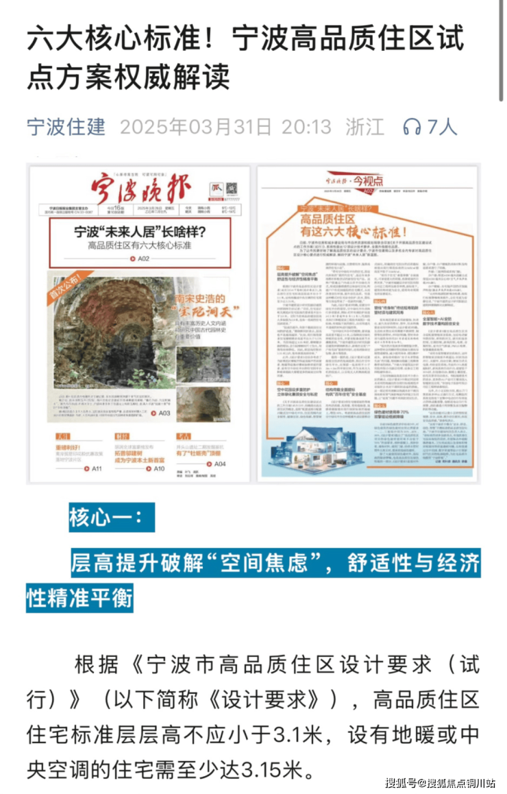 光看层高就不得了,宁波住建发布的《宁波高品质住区试点方案》里指出,高品质住宅标准层高不低于3.1米,有地暖或中央空调的住宅至少达到3.15米。
