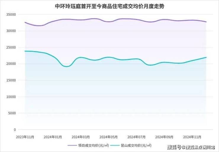 从月度成交均价走势可以清晰地看到,项目自2023年首开以来,无论市场表现如何,房价始终维持在3万+元/㎡,且走势非常稳健。