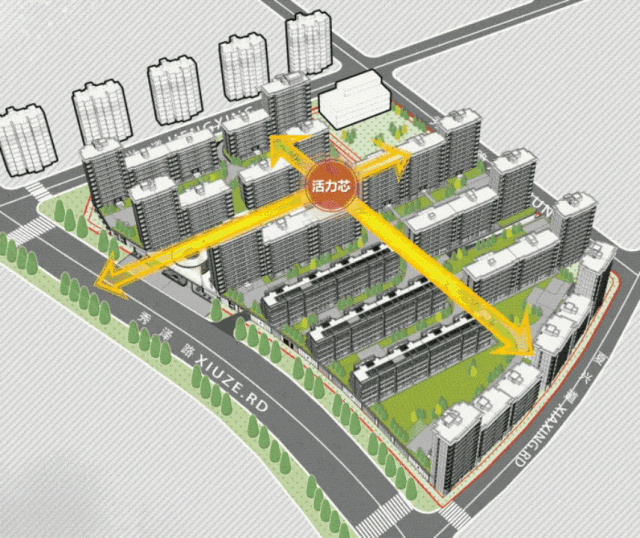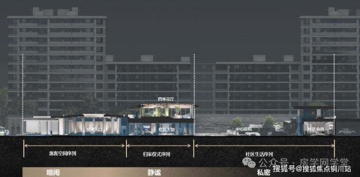 在方案设计中,始终围绕“住宅生命力”这个核心论点,在社区空间,精神认同,居住体验三个大的方向上同时发力,力图打造一个空间有仪式,文化有传承,居住有体验的全维生活场景。