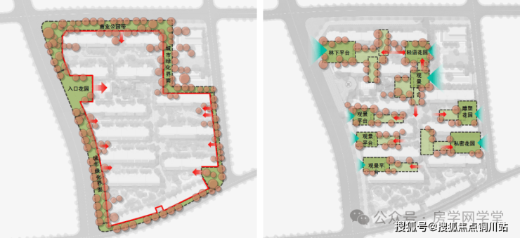 外部400米生长界面,穿越花园感的漫步街区进入住宅,随之展开的是一系列紧密嵌合的精致生活场景。社区规划由8个散落其间的观景阳台与口袋花园组成。(林下平台、轻语花园、口袋花园、雕塑花园、私密花园、观景平台)