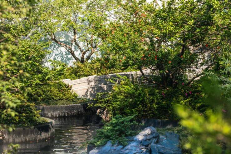 漫步项目中,中式元素融于点点青翠,颇有“一迳抱幽山,居然城市间”的悠然意味。