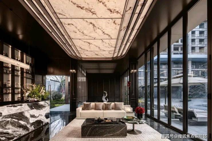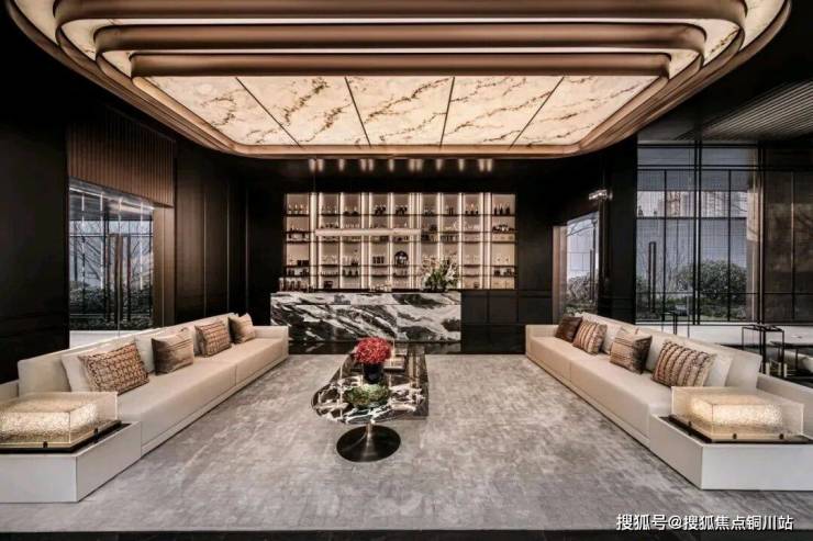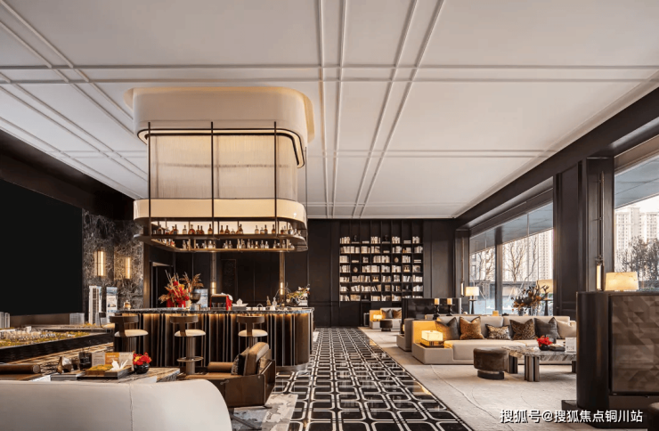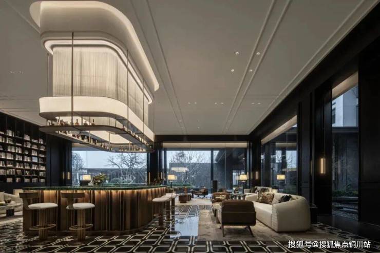 踏入会所空间,豁然开朗的空间布局,配以鲜明现代的线条和流畅的曲线,营造出酒店式豪华气息。多功能吧台搭配舒适沙发,让归家的住户能在片刻间得到放松,瞬间体验到宾至如归的温馨。会客厅的天花板上覆盖着精美的云石,台灯的玻璃肌理散发出一抹温馨的朦胧光芒,仿佛在汉江湾泛舟,沐浴在霞光渐逝的美景中。私宴区则以璀璨的奢石与流光玻璃为设计元素,相互碰撞出自然与奢华的完美结合,散发出充满生机且令人陶醉的梦幻内核。