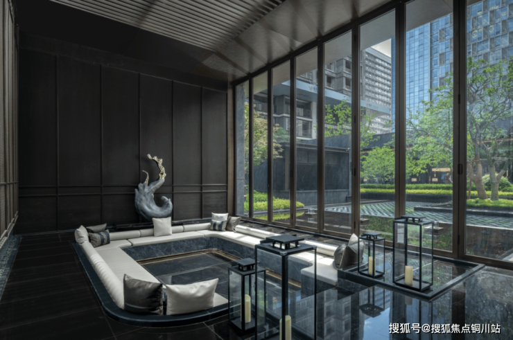 洽谈区入口精心设计,为您呈现核心区景观的极致美景。简洁明快的线条勾勒出整洁优美的场景,绿色植物与水景的巧妙交融、相互衬托,使空间层次更加丰富,营造出别致的光影效果。画面前景为涌泉水面,其上镶嵌精致条形奢石,营造出富有韵律感的美妙画面。