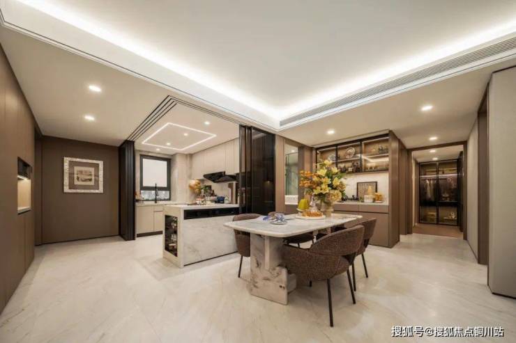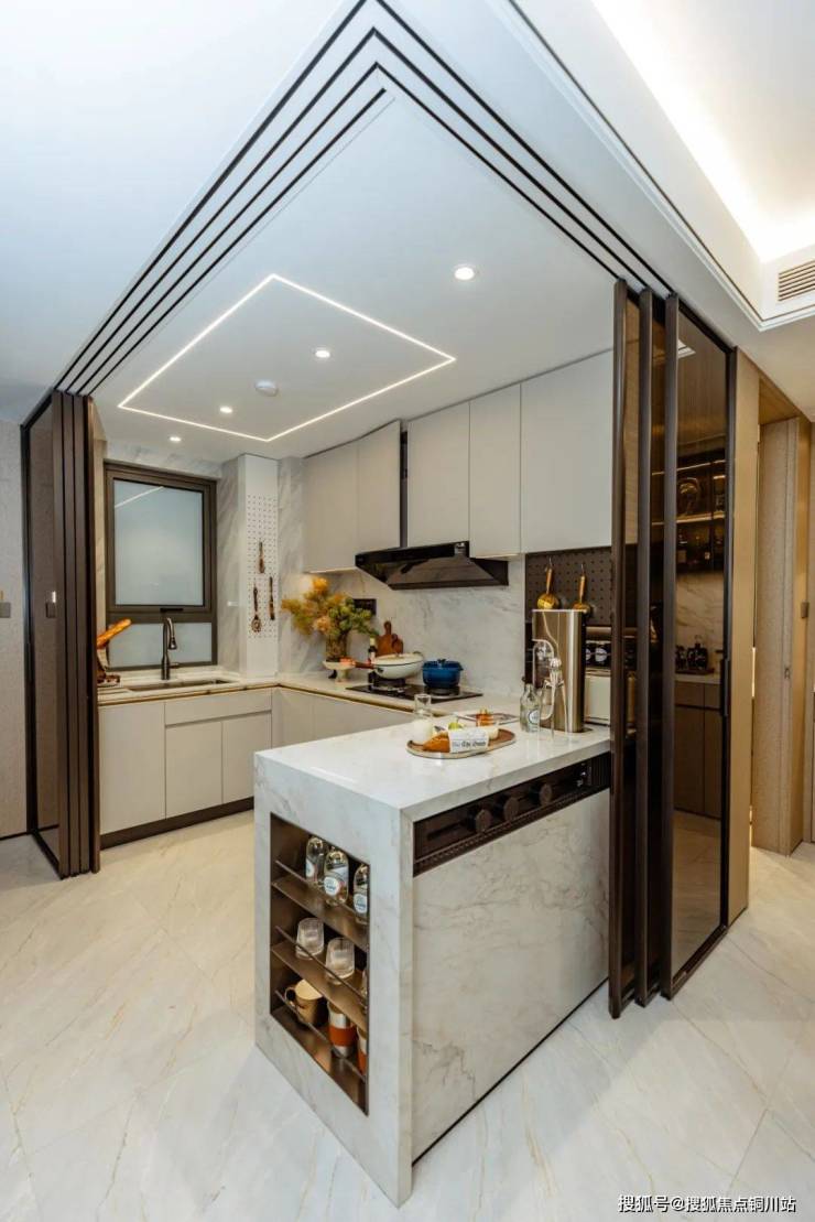 ➤开放式厨房、互动岛台:厨房的移门可以两面打开,中间利用西厨岛台跟餐厅形成了一个很好的连接。