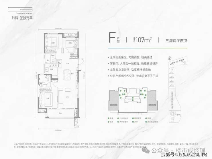建筑面积约91-107㎡品质装修三房,格局紧凑,南北通透,可满足家庭三代同堂的居住需求。
