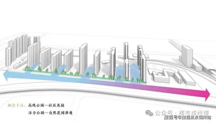 社区按照TOD未来社区的规划打造理念,借鉴纽约高线公园及成都万科高线公园,规划约1KM高线公园,打造TOD全能社区