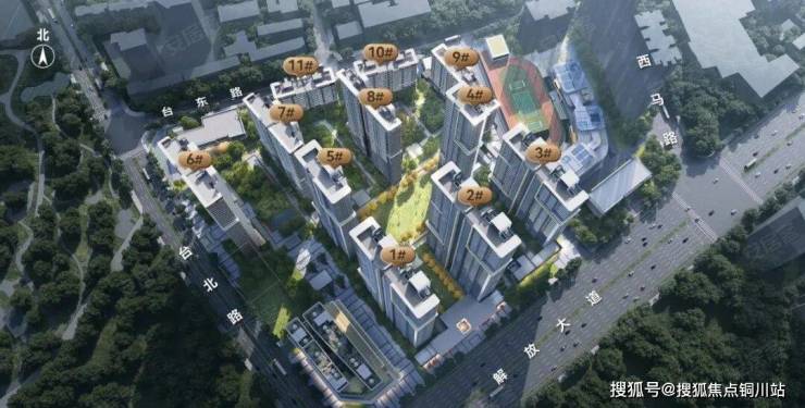 从平面图来看,该项目四面临道路,1、4、9号楼均为西南朝向,与台北路平行。