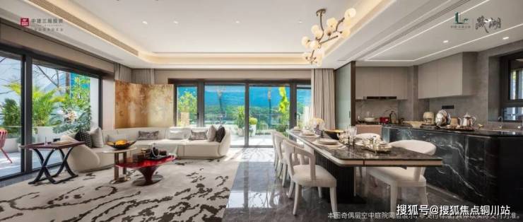 “1”即下沉式会客厅,约1500㎡,引入健身房、恒温泳池、私宴厅,对标五星级酒店体验。给豪宅业主足够的排面。