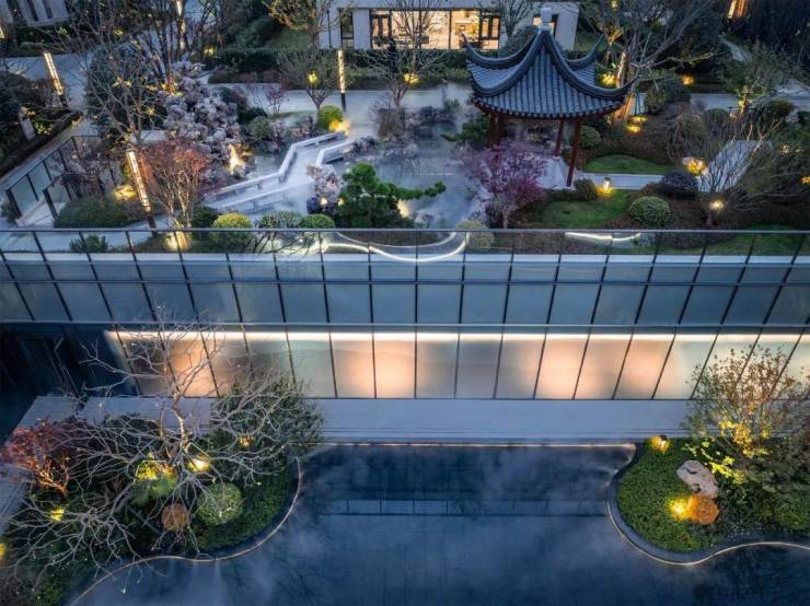 庭院的布景,是高科紫星堂师法江南古典园林,呈现的约700㎡的下沉式庭院,以汉白玉[山水如意]雕塑点缀,青松婆娑,水景涟漪,展露山水自然的真意。如意亭、松韵亭、曲径、长廊……这里恰好是整个小区最有江南气质、最“森系”的一段,陪伴家人在景廊中漫步谈笑,听鸟鸣,看落日,足不出户,赏尽四季春华秋实。