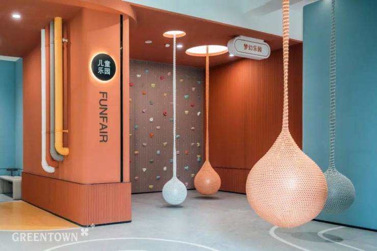 针对全龄段儿童规划「童梦星球泛会所」,以儿童游乐学习功能为主,并搭建「四点半学堂」。通过空间的无界联通,室外规划「奇妙宇宙乐园」,近千平超大场地设置多元化儿童游玩器械,满足孩子们的探索欲。