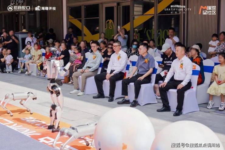 活动现场人潮涌动,欢声笑语不绝于耳!威武灵动的舞狮巡游拉开序幕,科技人与科技狗炫酷互动引来阵阵惊呼,萌宠展区羊驼、小浣熊与柯尔鸭吸引众多家庭驻足。未来社区沉浸式游戏体验区排起长队,定时红包雨将气氛推向高潮,而落日放映室前坐满了悠闲观影的人群,整个街区洋溢着科技感与烟火气交融的热烈氛围。