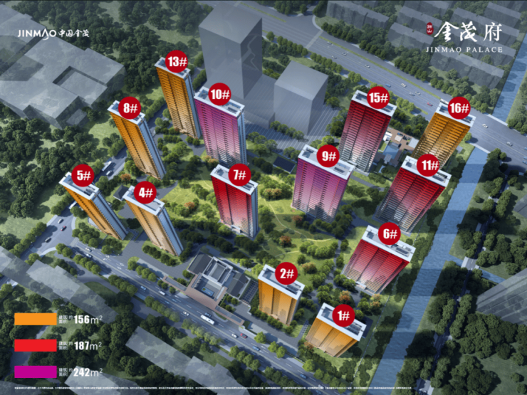 户型面积:主力户型为建面约 155㎡、187㎡、242㎡的四居室大平层。