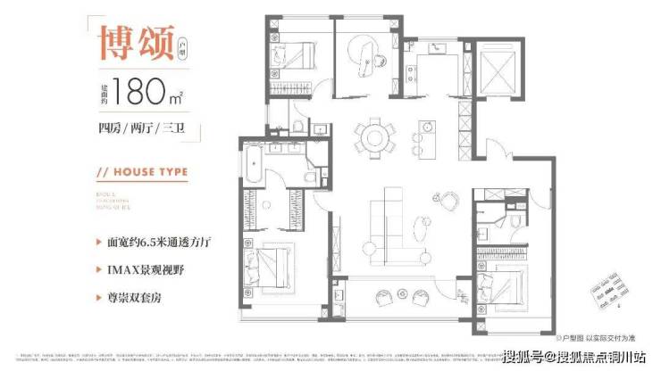 再来看建面约180㎡大平层户型,这款户型地处楼王位置,只有一栋楼有,南向正对着中央景观,视野绝佳,是真正的终极改善户型。