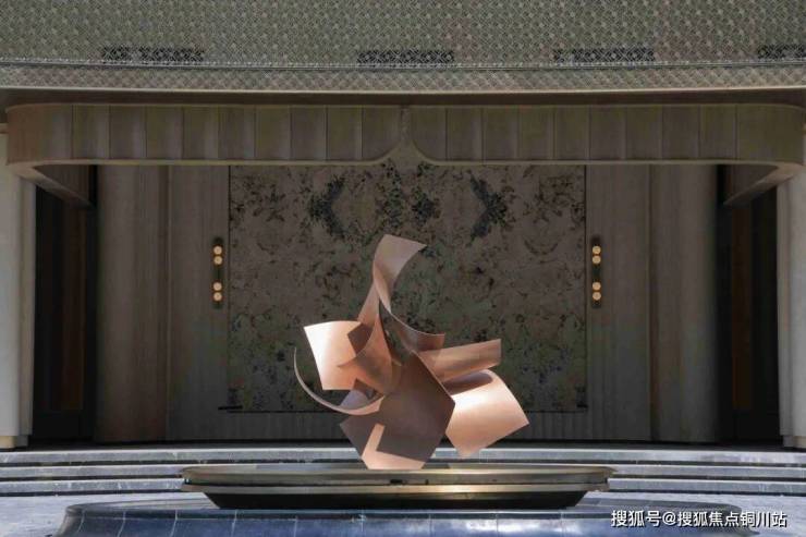 更令人惊喜的是,门庭大堂的挑空穹顶也采用了奢华的暗香槟金钢材干挂,映照出五彩斑斓,无论是尊贵的“面子”还是舒适的“里子”,皆得到了极致的体现。