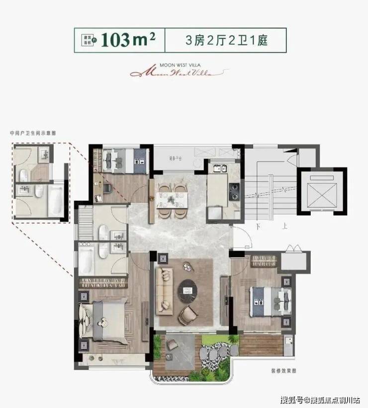 建面约103-118㎡舒居洋房,兼顾空间尺度和功能性的全明户型,阔绰南向大开间、套房式主卧布局、餐客厅一体化,再加上进深约2.4-2.7米的庭院大阳台等,让DreamHouse有了具象的表达。