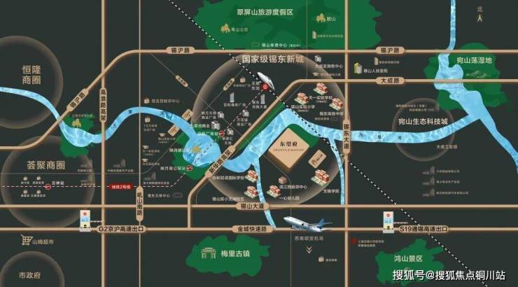 翠屏山、吼山、胶山、白丹山、鞋山和嵩山,远眺鸿山,群山环抱,源自最纯粹的天然氧吧,更是藏风聚气九里河、走马塘河、春丰河三条主要水系共同构成了新城独特的自然景观,滨河而居,内外双园景约3.6平方公里映月湖中央公园揽胜,九里河湿地柳岸生烟,宛山荡湿地公园缱绻绿意环抱,勾勒“城在绿中,人在画中”的小江南