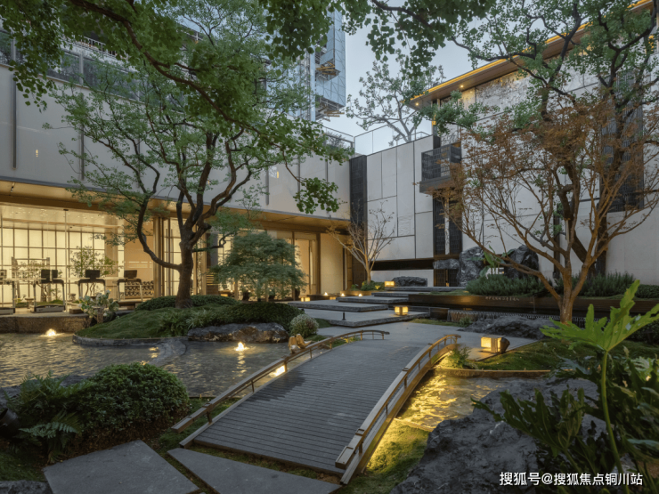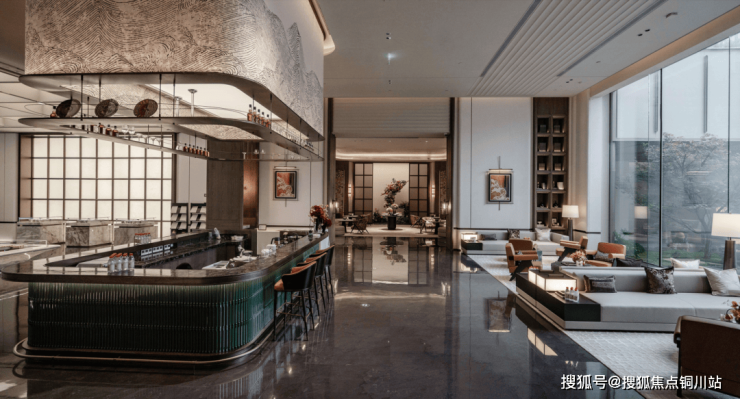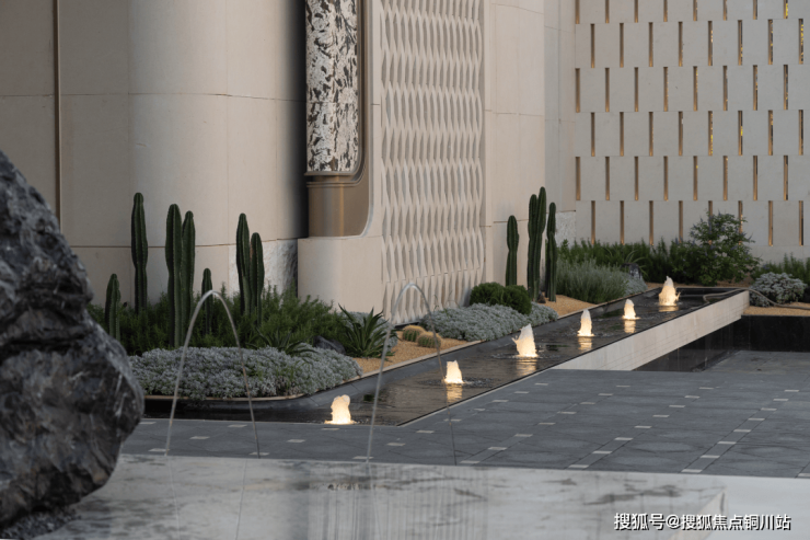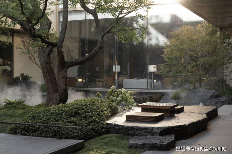 约300㎡下沉庭院,藏着一副立体的金陵胜景图。以现代设计语言重构江南意境。源鉴金陵胜景,以现代笔法演绎「四水归堂」。
