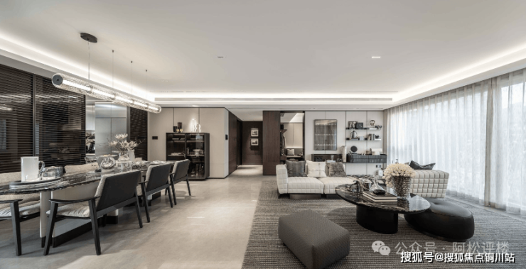 约6米开间的横厅、约62平的LDKBG一体化餐客厅,可以实现3场景并行,岛台早餐区、10人宴客区、儿童游戏区互不干扰。约16.1米的南向大开间,将整个房间的通风日照拉到极致。