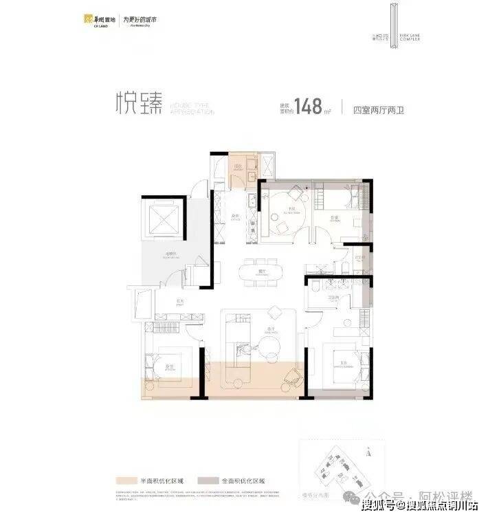 项目的纯粹之处还在于,全盘仅有2个户型,分别是建面约148、172平四房,都是纯改善户型的面积,吸引的都是实力相当的城市精英。
