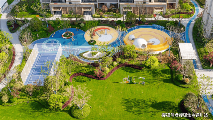 多维的功能空间,覆盖全龄化的互动场景,丰富着全家人的日常生活,孩子有地方撒欢了,父母也能安排好退休后的精彩生活。星空能量站&麦田怪圈,是儿童的专属玩乐场,明亮活泼的色彩,激发孩子探索的天性,让孩子们尽情玩耍;篮球场、羽毛球场、老年人的小型健身器械,提升了景观组团的丰富度,又方便业主的日常锻炼,单凭社区内有篮球场这点,就十分让人心动了。此外,还有健身、童趣、学思、会友,4大主题架空层,装下邻里温情;2大共享会客廊架,串联起邻里共享的林荫步道、阳光草坪,成为社区邻里社交的重要场地。