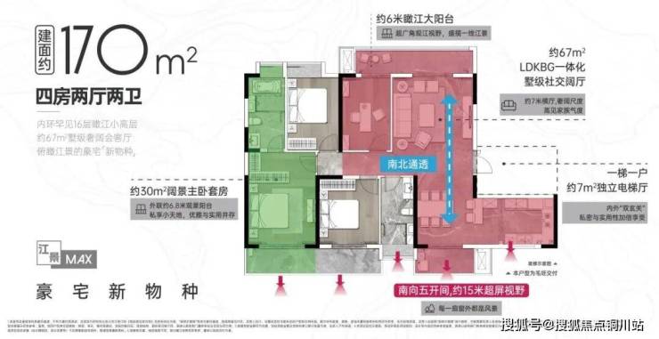 南北三阳台设计,约6m北向瞰江阳台,为一线江景量身打造的视野,居家自在观景。约67㎡LDKBG一体社交阔厅,大人的休闲空间,小孩的玩乐天地,老人的居家“后花园”,全年龄段的需求在此都能轻松满足。