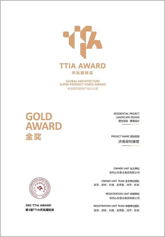在产品打造上,济南多项目荣获TTIA天坛国际奖,包含建筑设计、景观设计、室内设计等多类奖项。保利珑誉项目住宅景观荣膺2024年美国缪斯设计奖铂金奖。保利鹊华赋,以“半藏山水·东方桃源”为设计理念,斩获2024年度“缪斯国际设计金奖”;2024年度荣获“金盘产品力·高端豪宅金级认证”。