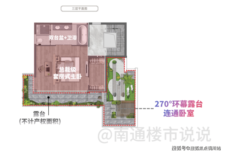 万濠东郡深谙“一方露台,一方世界”的真谛,三层配置了约45㎡的屋顶露台,270°观景视野,实现生活与社交的多维切换。