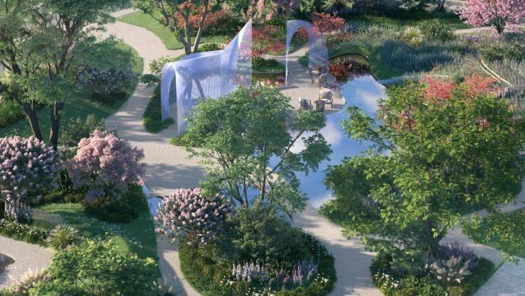 江南玖序的整体景观分为9个景观组团,分别以《永乐大典·乐典》里的九个音乐文化典故为设计理念,马上要呈现的是中央景观轴的其余部分,包括“琵琶行”的琴腹部分,以及“玄雅集”。