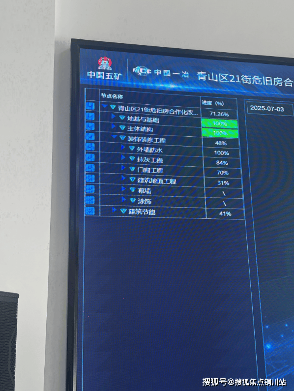 步入项目智慧中心,巨大的管控平台犹如工地大脑,十一个功能模块在屏幕上闪烁,项目负责人轻点数字沙盘,整个工地三维模型跃然眼前,项目节点一目了然。地基与基础、主体结构、装饰装修工程、外墙防水、抹灰工程、门窗工程、建筑地面工程、幕墙、涂饰、建筑节能等子项进度十分精准。
