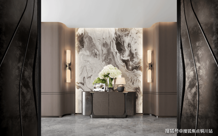 比如归家,玖映蠡湖通过渡河而归的步行归家桥,约47米超尺度迎宾门廊,一层、负一层连通的双精装大堂,其中地下光厅入户大堂局部挑空约9.25米/10.35米,缔造出国际顶奢酒店级归家礼仪。