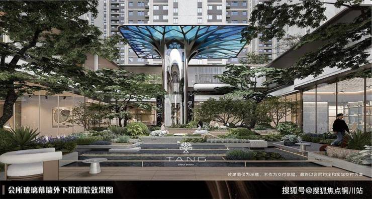 ▶下沉会所借巨幅玻璃引景入室,四季风光皆成天然画幕;