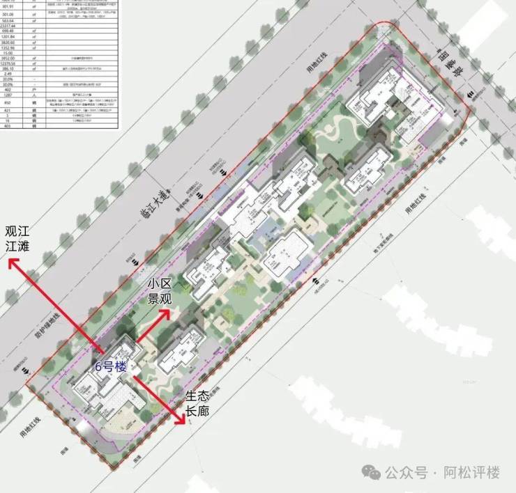 →其次,一字排开布局,所有楼栋直面长江,6号楼头排看江,位置一绝。