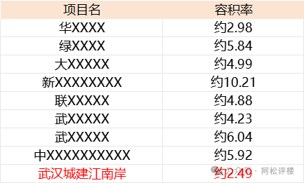 据“武汉阿松”不完全统计,目前在售或即将入市的滨江豪宅中,难寻比武汉城建江南岸容积率更低的楼盘。