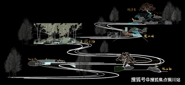 以江流线条塑动态之美,玉石化层叠立体,燕巢形态添温情。五大节点沿景观动线布局,融荆楚灵韵于现代设计,打造自然与人文交织的诗意栖居。