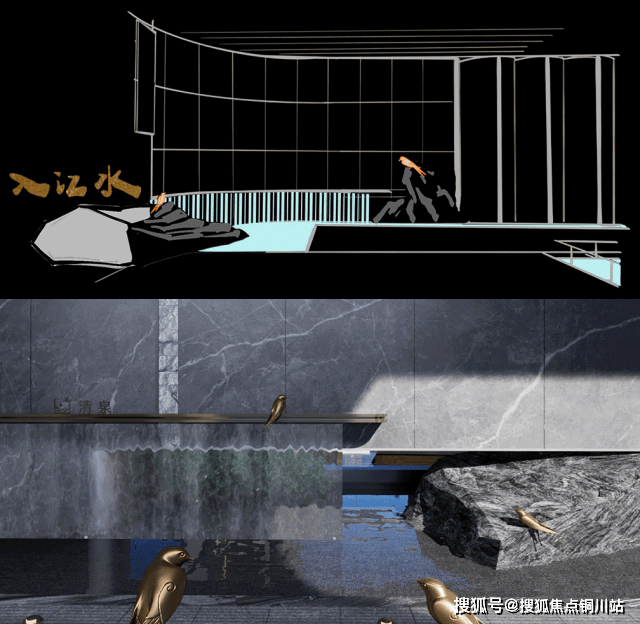归燕轻掠,水雾氤氲,运用中国传统画艺的留白手法,勾勒出水景的烟波浩渺。远山如黛,近水含烟,仿佛一幅徐徐展开的水墨长卷,引领观者步入"江流天地外"的意境。