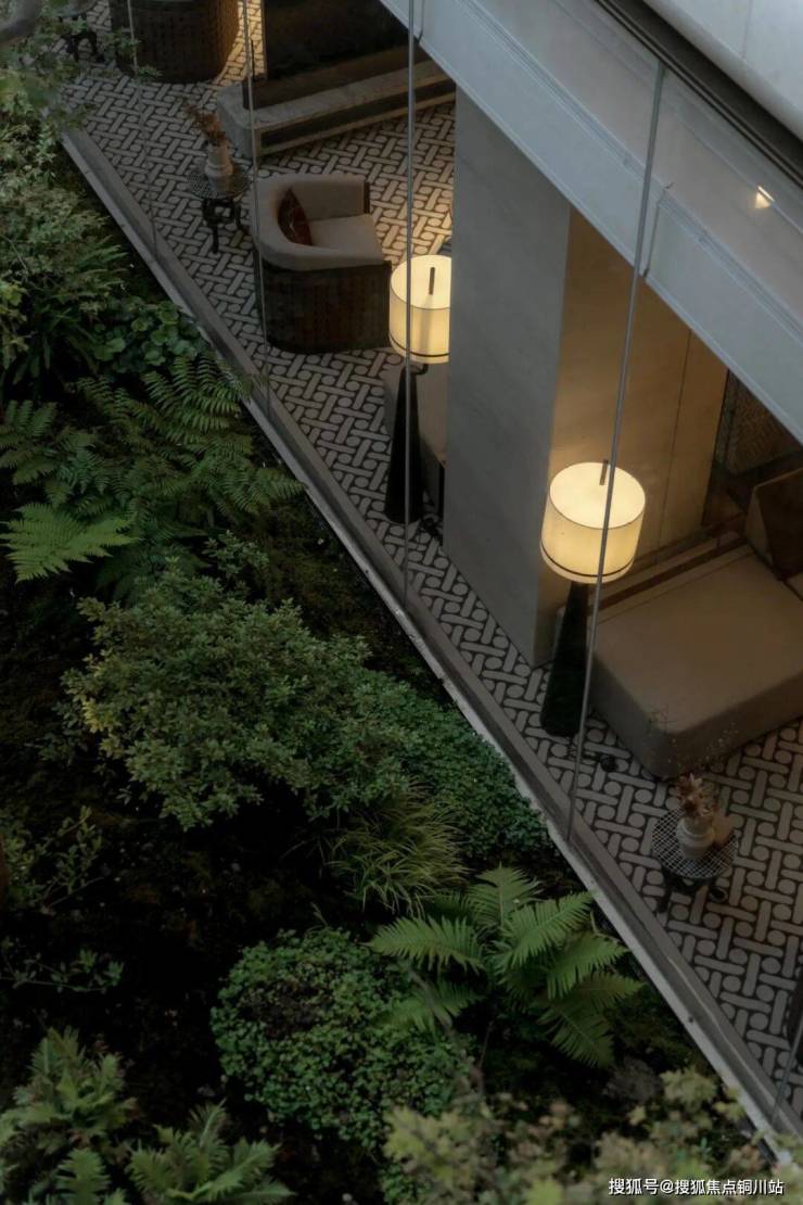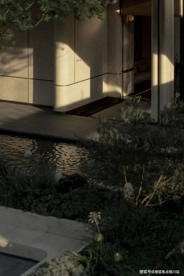 在前场景观体系,苏州招商序又围绕6幕归巢洄游序曲,创新提出将平面景观变成立体景观,通过超600㎡水院与后场归家庭院的嵌套、地面庭院与下沉庭院的垂直呼应、近两百岁名木羽毛枫的点缀,有层次地加强人与人、空间、生活的自然交往。