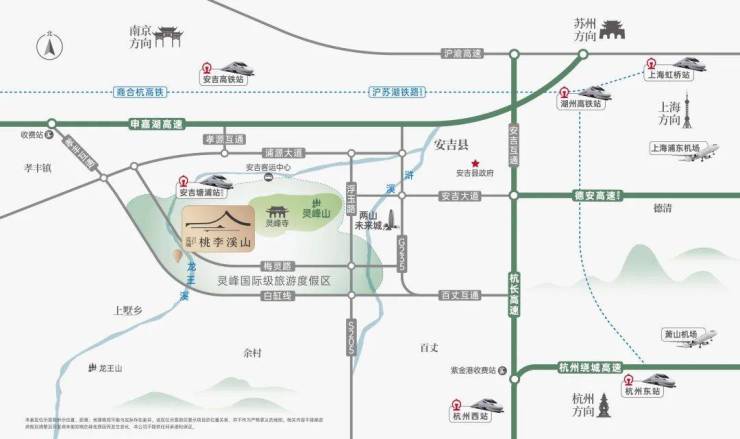 灵峰度假区正在全面融入长三角一体化发展。继商合杭高铁、杭长高速、申嘉湖高速全线贯通之后,宁杭高铁二通道安吉段已列入了十四五规划,未来将直接联通杭州西站,大大缩短了到杭州的距离。而规划中新高铁站,就设在距离桃李溪山直线5公里外的塘浦片区。(信息来源于安吉发布)