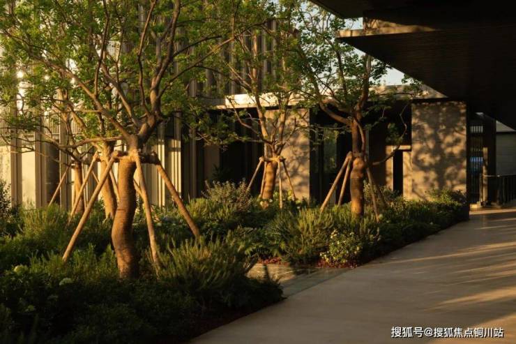 以酒店美学铸就隐奢门庭归家礼序;酒店式落客庭院呈现高雅的秩序之美,给人以高端、舒适、仪式的抵达体验;在环岛落客区,特色主景树作为视觉center,成为晋墅迎宾的标志性景观;