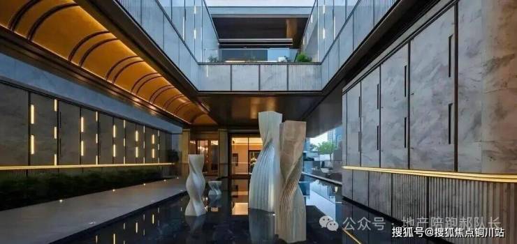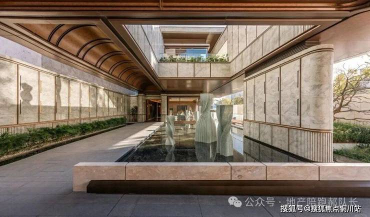 从地下一层步入归家之路,穿过地库光厅,便抵达了静谧的哲学水厅。两侧深邃的水池映衬着天光,光线透过顶部的采光井倾泻而下,伴着墙面传来的潺潺流水声,让身心瞬间沉静,归家即归心。而水厅的尽头,更藏着令人惊喜的峡谷水幕,室内与自然在此相融,构成一幅绝美的对景意境。